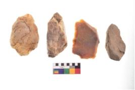 | Description / विवरण | There are n 4 utilized flake cores. There are multidirectional irregular dominant scar pattern on both dorsal and ventral face of the flake cores. All of them are tapeing at one end. |