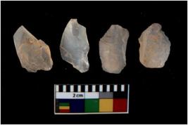 | Description / विवरण | There are n 4 utilized flake cores. There are multi directional irregular scar pattern on them. All of them are tapering at one end. |