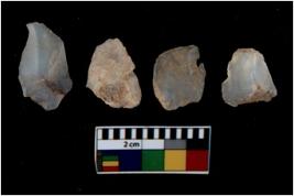 | Description / विवरण | There are n 4 utilized flake cores. There are multi directional irregular scar pattern on them. One is tapering at one end and three have blunted edges. |