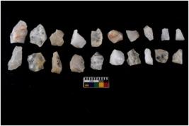 | Description / विवरण | There are n 20 Flake tool; There are multidirectional irregular scar pattern on them. few have blunt edges, Some of them are tapering at one end. |