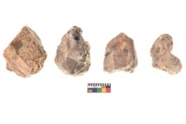 | Description / विवरण | There are n 4 utilized flake cores. There are multidirectional irregular dominant scar pattern on both dorsal and ventral face of the flake cores. One has blunted edge and three have round edges. |