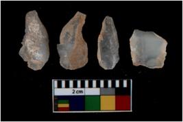 | Description / विवरण | There are n 4 utilized flake cores. There are multi directional irregular scar pattern on them. Three are tapering at one end and one has blunted edge. |