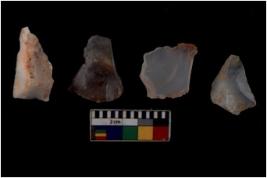 | Description / विवरण | There are n 4 of utilized worked cores and show multidirectional irregular scar pattern on both dorsal and ventral sides. They have sharp edges. |
