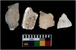 | Description / विवरण | There are n 4 utilized flake cores. Out of them three are made up of Chalcedony and one is made up of Chert. There are multi directional irregular scar pattern on them. Two are tapering at one end and two have blunted edges. |
