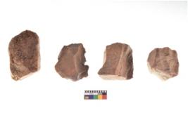 | Description / विवरण | There are n 4 utilized flake cores. There are multidirectional irregular dominant scar pattern on both dorsal and ventral face of the flake cores. One is tapering at one end and three have blunted edges. |