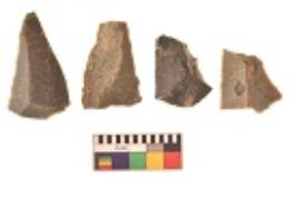| Description / विवरण | There are n 4 utilized flakes. There are multi directional irregular scar pattern on both dorsal and ventral face of the flakes. Three are tapering at one end and one has sharp edge. |