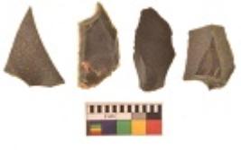 | Description / विवरण | There are n 4 utilized flakes. There are multi directional irregular scar pattern on both dorsal and ventral face of the flakes. Two are tapering at one end and two have sharp edges. |