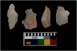 | Description / विवरण | There are n 4 utilized flake cores. There are multi directional irregular scar pattern on them. All of them are tapering at one end. |