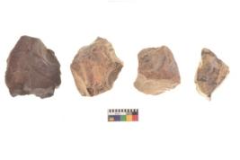 | Description / विवरण | There are n 4 utilized flake cores. There are multidirectional irregular dominant scar pattern on both dorsal and ventral face of the flake cores. One has sharp edge and three have blunted edges. |