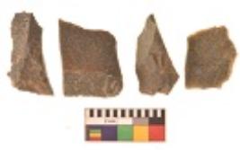 | Description / विवरण | There are n 4 utilized flakes. There are multi directional irregular scar pattern on both dorsal and ventral face of the flakes. Three are tapering at one end and one has sharp edge. |
