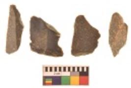 | Description / विवरण | There are n 4 utilized flakes. There are multi directional irregular scar pattern on both dorsal and ventral face of the flakes. Two are tapering at one end and two have sharp edges. |