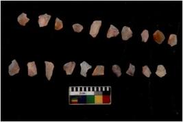 | Description / विवरण | Specimen of flakes Chips with prominent flaking marks. It made up of a short flakes with sides trimmed. |