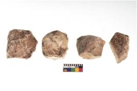 | Description / विवरण | There are n 4 utilized flake cores. There are multidirectional irregular dominant scar pattern on both dorsal and ventral face of the flake cores. One has blunted edge and three have round edges. |