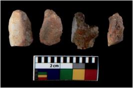 | Description / विवरण | There are n 4 utilized flake cores. There are multi directional irregular scar pattern on them. All of them are tapering at one end. |