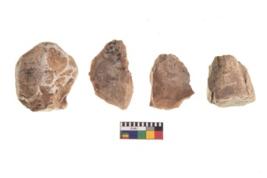 | Description / विवरण | There are n 4 utilized flake cores. There are multidirectional irregular dominant scar pattern on both dorsal and ventral face of the flake cores. One is tapering at one end and three have blunted edges. |