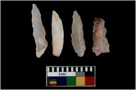 | Description / विवरण | There are n 4 utilized flake cores. There are multi directional irregular scar pattern on them. Two are tapering at one end and two have sharp edges. |