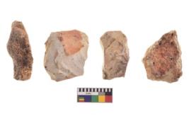| Description / विवरण | There are n 4 utilized flake cores. There are multidirectional irregular dominant scar pattern on both dorsal and ventral face of the flake cores. All of them are tapeing at one end. |