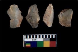| Description / विवरण | There are n 4 utilized flake cores. There are multi directional irregular scar pattern on them. All of them are tapering at one end. |