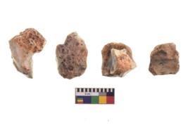 | Description / विवरण | There are n 4 utilized flake cores. There are multidirectional irregular dominant scar pattern on both dorsal and ventral face of the flake cores. Two have blunted edges and two have round edges. |