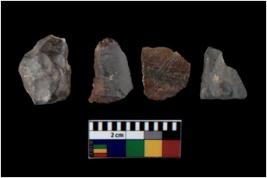 | Description / विवरण | There are n 4 utilized flake cores. Out of them one is made up of Chalcedony and three are made up of Chert. There are multi directional irregular scar pattern on them. Two have blunted edges and two have round edges. |