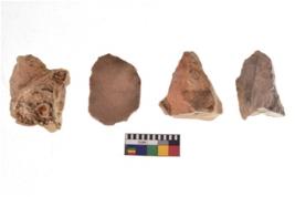 | Description / विवरण | There are n 4 utilized flake cores. There are multidirectional irregular dominant scar pattern on both dorsal and ventral face of the flake cores. Two have blunted edges and two have round edges. |