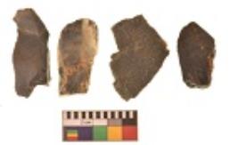 | Description / विवरण | There are n 4 utilized flakes. There are multi directional irregular scar pattern on both dorsal and ventral face of the flakes. Three are tapering at one end and one has sharp edge. |
