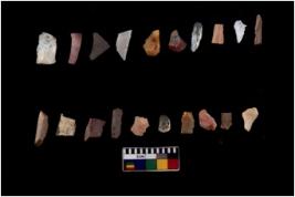 | Description / विवरण | There are n 20 Flake tool; There are multidirectional irregular scar pattern on them. few have blunt edges, Some of them are tapering at one end. |