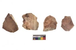 | Description / विवरण | There are n 4 utilized flake cores. There are multidirectional irregular dominant scar pattern on both dorsal and ventral face of the flake cores. Two have blunted edges and two have round edges. |