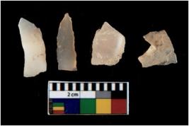 | Description / विवरण | There are n 4 utilized flake cores. There are multi directional irregular scar pattern on them. Two are tapering at one end and two have blunted edges. |