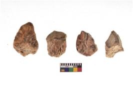 | Description / विवरण | There are n 4 utilized flake cores. There are multidirectional irregular dominant scar pattern on both dorsal and ventral face of the flake cores. One has sharp edge and three have blunted edges. |
