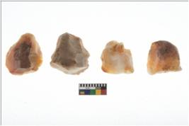 | Description / विवरण | There are n 4 flake cores. All of them are fully fluted flake cores without any trace of crested ridge flakes. Some are tapering at one end. Few have flat base whereas some have blunted edges. |