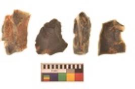 | Description / विवरण | There are n 4 utilized flakes. There are multi directional irregular scar pattern on both dorsal and ventral face of the flakes. Three are tapering at one end and one has sharp edge. |
