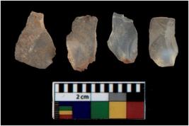 | Description / विवरण | There are n 4 utilized flake cores. There are multi directional irregular scar pattern on them. All of them are tapering at one end. |