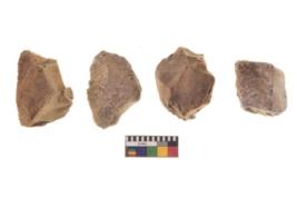 | Description / विवरण | There are n 4 utilized flake cores. There are multidirectional irregular dominant scar pattern on both dorsal and ventral face of the flake cores. Two have blunted edges and two have round edges. |