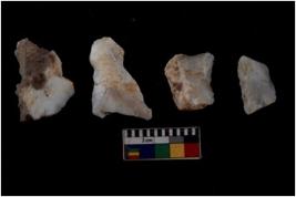 | Description / विवरण | There are n 4 of utilized worked cores and show multidirectional irregular scar pattern on both dorsal and ventral sides. One has a flat base. |