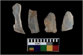 | Description / विवरण | There are n 4 utilized flake cores. There are multi directional irregular scar pattern on them. All of them are tapering at one end. |