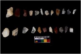| Description / विवरण | Specimen of flakes tool with prominent flaking marks. It made up of a short flakes with sides trimmed. |