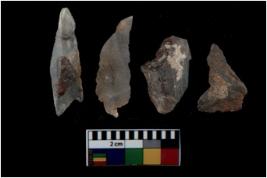 | Description / विवरण | There are n 4 utilized flake cores. Out of them three are made up of Chalcedony and one is made up of Chert. There are multi directional irregular scar pattern on them. Two are tapering at one end and two have sharp edges. |
