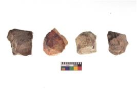 | Description / विवरण | There are n 4 utilized flake cores. There are multidirectional irregular dominant scar pattern on both dorsal and ventral face of the flake cores. Three have flat base and one has blunted edge. |