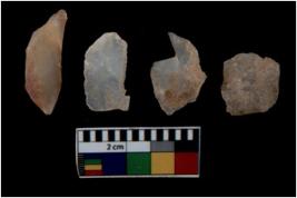 | Description / विवरण | There are n 4 utilized flake cores. There are multi directional irregular scar pattern on them. One is tapering at one end and three have blunted edges. |