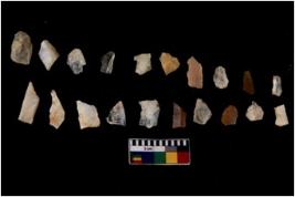 | Description / विवरण | Specimen of flakes tool with prominent flaking marks. It made up of a short flakes with sides trimmed. |