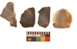 | Description / विवरण | There are n 4 utilized flakes. There are multi directional irregular scar pattern on both dorsal and ventral face of the flakes. Three have flat base and one has blunted edges. |