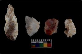 | Description / विवरण | There are n 4 of utilized worked cores and show multidirectional irregular scar pattern on both dorsal and ventral sides. |