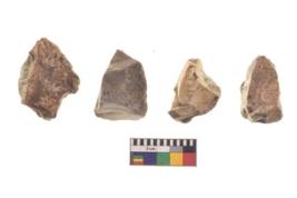 | Description / विवरण | There are n 4 utilized flake cores. There are multidirectional irregular dominant scar pattern on both dorsal and ventral face of the flake cores. One has sharp edge and three have blunted edges. |