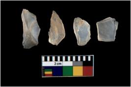 | Description / विवरण | There are n 4 utilized flake cores. There are multi directional irregular scar pattern on them. One has sharp edge and three have blunted edge. |