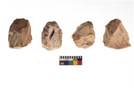 | Description / विवरण | There are n 4 utilized flake cores. There are multidirectional irregular dominant scar pattern on both dorsal and ventral face of the flake cores. One has blunted edge and three have round edges. |
