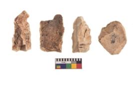 | Description / विवरण | There are n 4 utilized flake cores. There are multidirectional irregular dominant scar pattern on both dorsal and ventral face of the flake cores. All of them are tapeing at one end. |