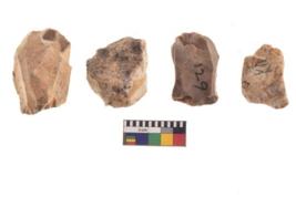 | Description / विवरण | There are n 4 utilized flake cores. There are multidirectional irregular dominant scar pattern on both dorsal and ventral face of the flake cores. Two are tapering at one end and two have blunted edges. |