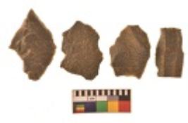 | Description / विवरण | There are n 4 utilized flakes. There are multi directional irregular scar pattern on both dorsal and ventral face of the flakes. Three are tapering at one end and one has sharp edge. |