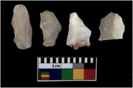 | Description / विवरण | There are n 4 utilized flake cores. There are multi directional irregular scar pattern on them. Two are tapering at one end and two have blunted edges. |